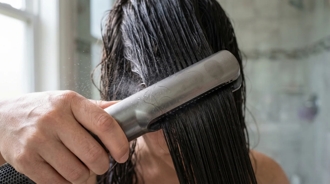 Phase 2: Wet StylingWet Mode / Medium Air / 230°FSlow passes (3-4 seconds per section). Steam is normal; sizzle is not.